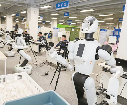 广西东盟具身智能中试训练场里,工作人员在调控训练机器人。该中试平台能缩短技术落地周期,加速科技成果转化。李新雄 摄