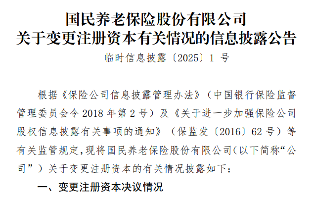 近日,国民养老保险股份有限公司(以下简称“国民养老”)公告称,根据北京产权交易所公开征集投资人的结果,拟以发行新股增资方式引入杭州市拱墅区国有投资集团有限公司(以下简称“拱墅国投”)、成都市锦江投资发展集团有限责任公司(以下简称“锦江发展”)、重庆渝中国有资产经营管理有限公司(以下简称“渝中国资”)及广州凯云发展股份有限公司(以下简称“凯云发展”)为战略投资人。 本次国民养老拟增资总金额为5亿元,拟发行336198760股,拟增加注册资本3.3619876亿元,增资后注册资本为117.14亿元。 据悉,相关战略投资人均为国民养老分公司所在地方政府的投资平台公司:拱墅国投是杭州市拱墅区产业投资和资产经营的核心平台;锦江发展是成都市锦江区负责资本投资运营、资产运营管理、城乡融合发展的国有独资公司;渝中国资承担着重庆市渝中区重大产业投资任务;凯云发展是广州开发区控股集团有限公司全资子公司。 国民养老表示,地方政府是国家养老政策的关键执行者,在覆盖城乡、普惠可及的三级养老服务网络建设中起着不可替代的作用。此次引入多个重点区域地方政府投资平台作为战略投资人,相关区域的经济活跃度、公共服务能力、民生事业发展水平、政府运作效率等在国内均领先,老百姓养老需求较为集中,且在国民养老分公司落户发展过程中给予了有力支持。国民养老将更加紧密地协同地方资源,精准对接区域养老多元化、个性化需求,推动养老金融与养老服务的深度融合,为当地“老有所养”的民生事业多办实事,积极探索养老金融服务银发经济的新模式。 下一步,在各股东方的支持下,国民养老将以股权为纽带进一步深化全面合作关系,从负债、资产、服务三端同时发力,研究定制开发“政策支持+商业补充”的普惠型养老金融产品,更好满足老百姓的养老保障和财富管理需求;加强投融资合作,助力地方政府科技创新、民生事业、银发经济等领域转型发展和产业布局;充分整合和发挥各自资源优势,探索开展养老服务体系建设与合作运营。 公开资料显示,国民养老成立于2022年3月22日,股东涵盖工、农、中、建、交、邮储等11家主要商业银行的下属公司,中信证券、中金公司等6家大型证券保险机构及实业投资方,并于2024年年底成功引入德国安联作为战略投资者。该公司已相继在北京、山东、浙江、四川、重庆、广东、上海设立省级经营单位。(朱艳霞)