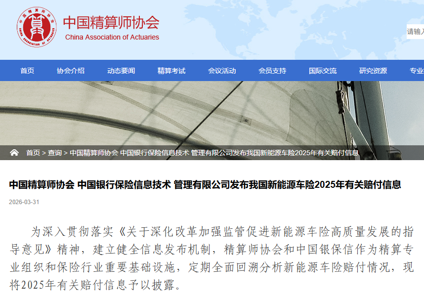 3月31日,中国精算师协会(以下简称“精算师协会”)、中国银行保险信息技术管理有限公司(以下简称“中国银保信”)发布了我国新能源车险2025年有关赔付信息。